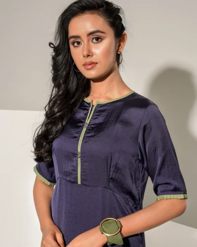 Female Front Button Placket With Bothside Frill Casual Top | Midnight Blue