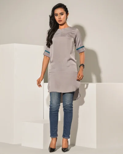 Female A-line V Neck With Lace Details Short Kurta By Amna | Sky Blue