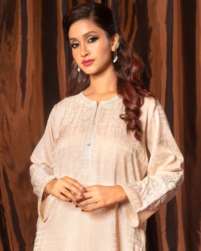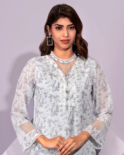Female Princessline Lace Details & Hand Embroidery Work Short Kamiz | Brook Green