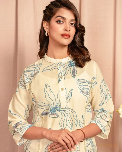 Female Round Neck With Button & Lace Details by Amna | Ivory White Tk. 2,150