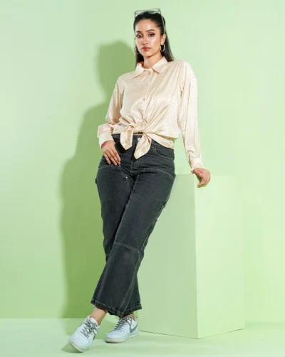 Female Waist Knot Crop Casual Top | Golden Fleece