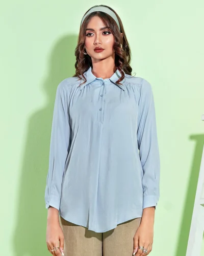 Female Front Yoke Lace Details Casual Top | Light Sky Blue