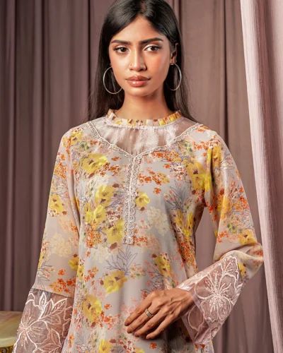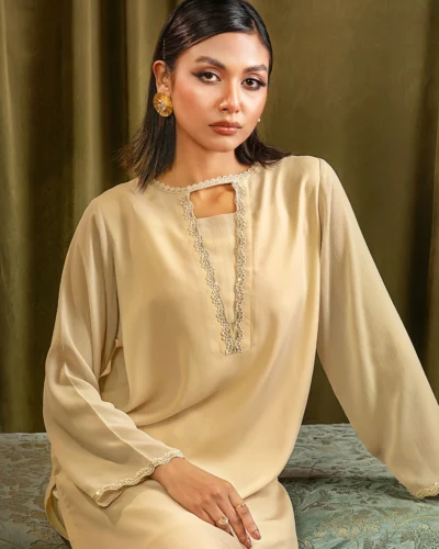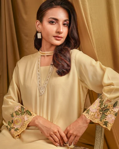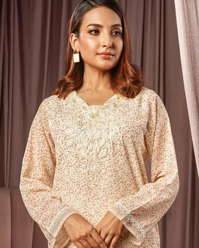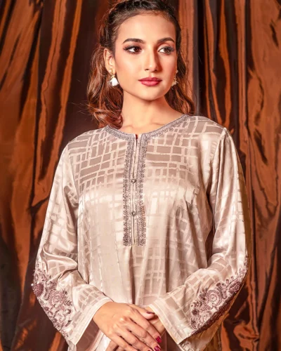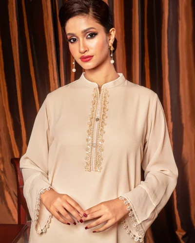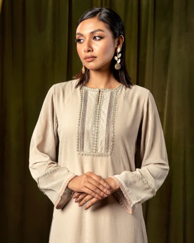 Female Round- Neck Details long Kameez | Beige Tk. 3,200