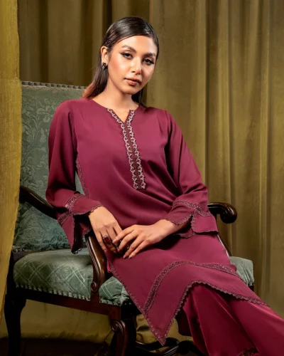 Female Regular Fit Split Crew-Neck Long Kamiz | Aggie Maroon Tk. 2,650