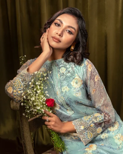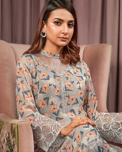 Female Crinkle Chiffon Georgette Short Kameez | Bronze Tk. 3,400