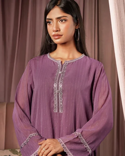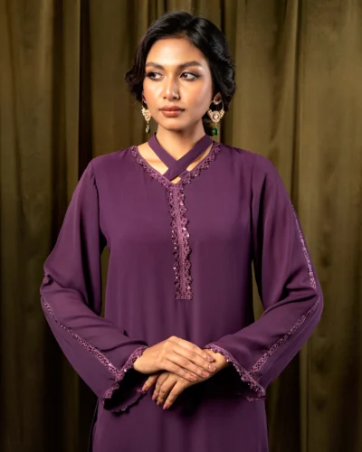 Female Regular Fit Fusion Collar Neck Long Kameez | Purple Eggplant Tk. 2,916
