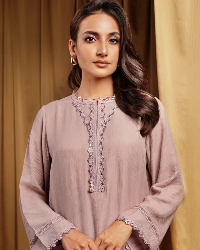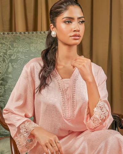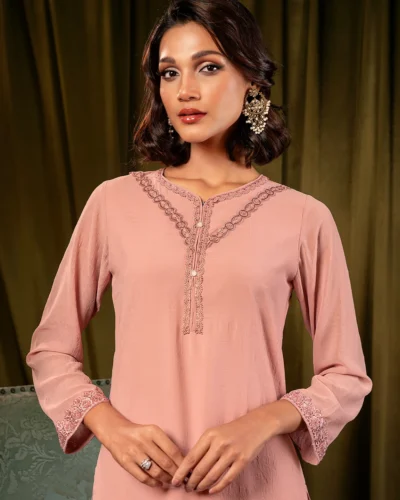 Female Decollete- Neck Details Short Kamiz | Veiled Rose Pink Tk. 2,916