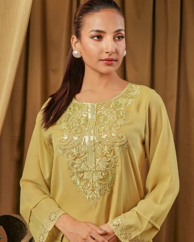 Female Regular Fit Round-Neck Long Kameez | Golden Fleece Tk. 3,250