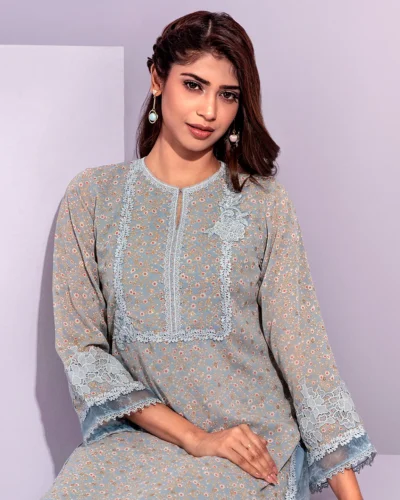 Female Princessline Lace Details & Hand Embroidery Work Short Kamiz | Brook Green