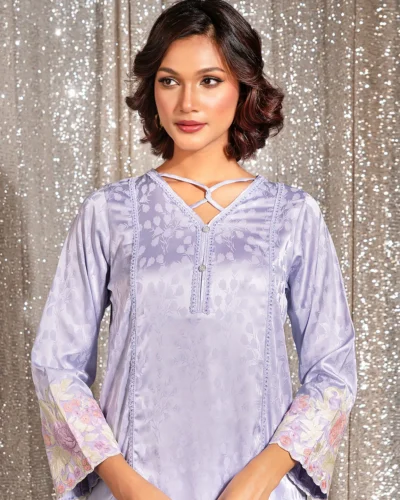 Embroidered Luxury Double Silk Long Kameez | Lavender Mist Tk. 3,650