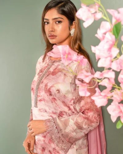 Embroidered Chiffon Fine Georgette Short Kameez | Crepe Pink Tk. 3,250
