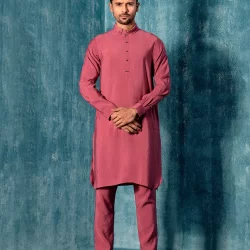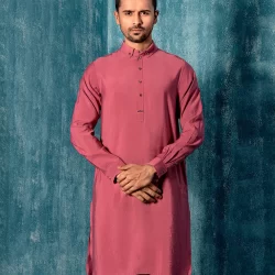 Men’s fancy cotton semi slim fit panjabi For Eid.Classic Band Collar.Inside Placket and shoulder line has decorative stitch. Band has twill tape details. Back yoke has contrast Loop. Sleeve has straight cuff with piping. Round hem.