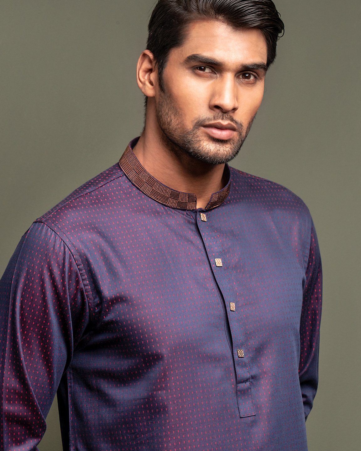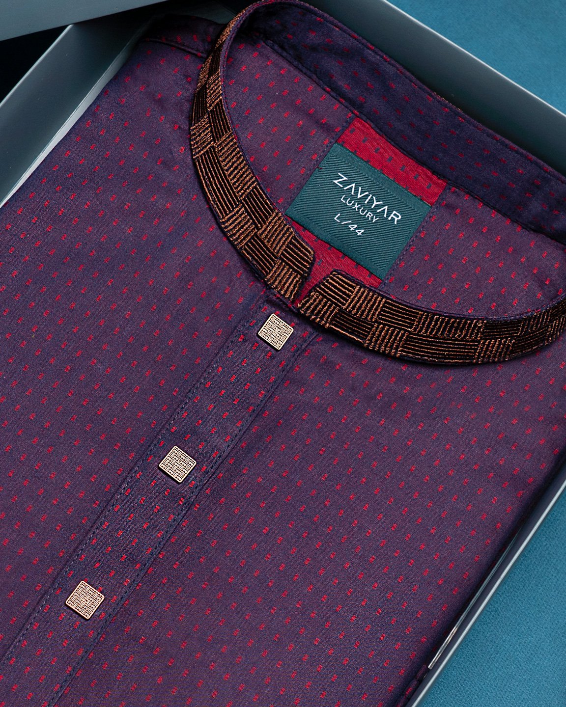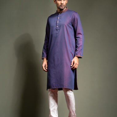 Zaviyar Premium Embroidery men’s Panjabi with decorative metal button.
