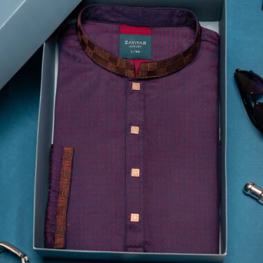 Zaviyar Premium Embroidery Panjabi | Eggplant