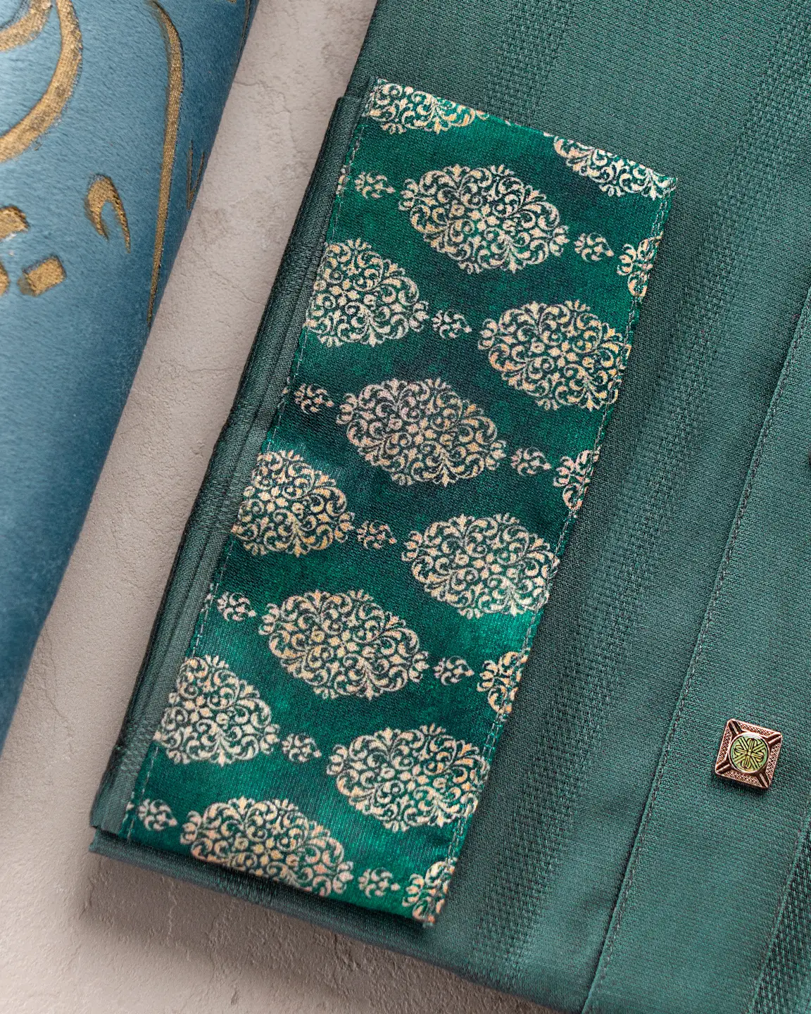 Product Description : Men’s regular fit panjabi with a premium band collar. The front placket is neatly detailed and finished with decorative metal buttons. Matching cuffs with refined trimming for a clean, coordinated look.