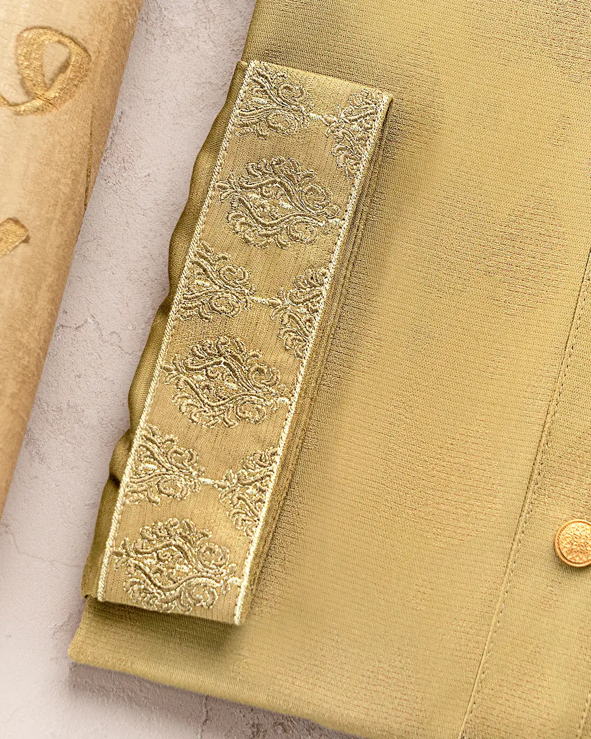 Product Description : Men’s Bamboo Cotton regular fit Panjabi For Eid. Band Collar. Collar band, Body & sleeve has embroidery details. Decorative metal show button, long Sleeve, straight hem.