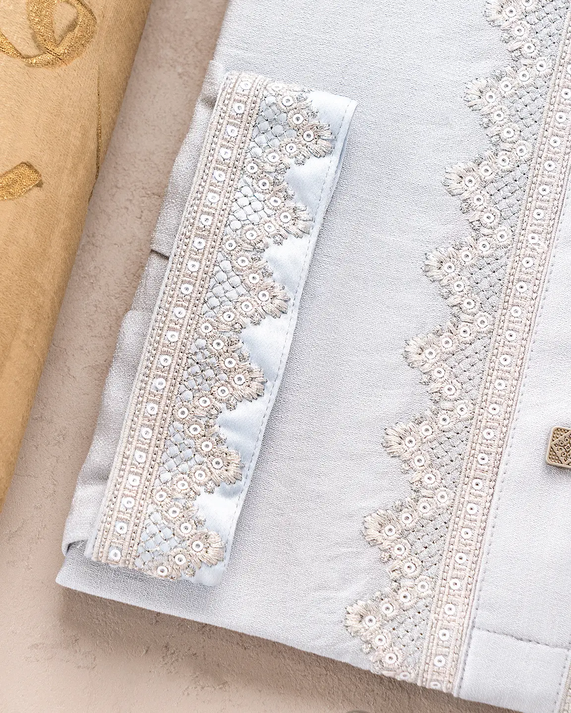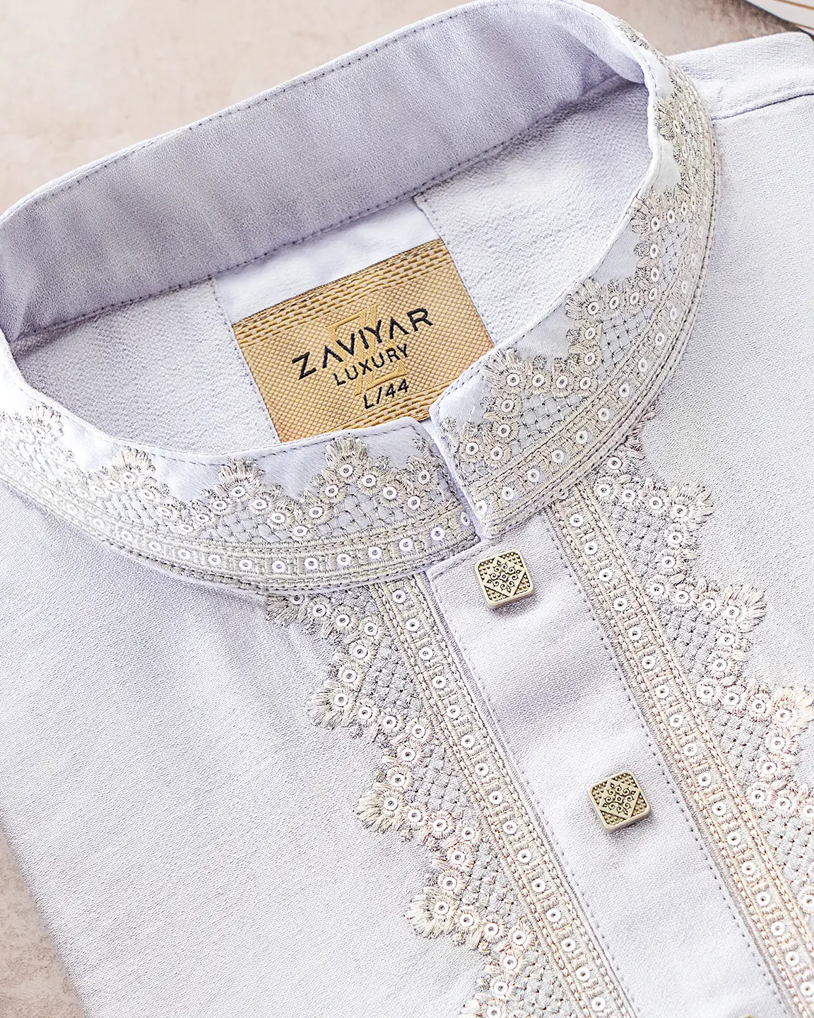 Product Description : Men’s Modal Rayon regular fit Panjabi For Eid. Band Collar. Collar band & sleeve has embroidery details. Decorative metal show button, long Sleeve, straight hem.