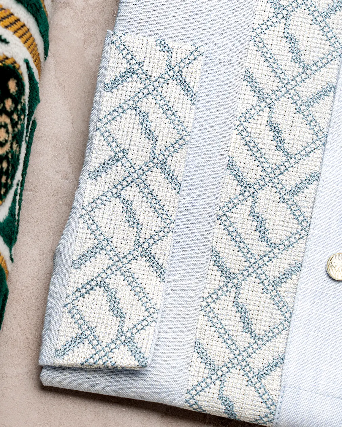 Product Description : Men’s Luxury Linen regular fit Panjabi For Eid. Band Collar. Collar band & sleeve has embroidery details. Decorative metal show button, long Sleeve, straight hem.