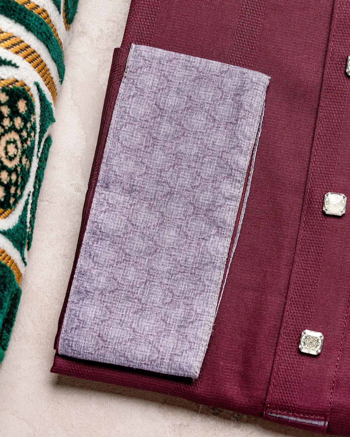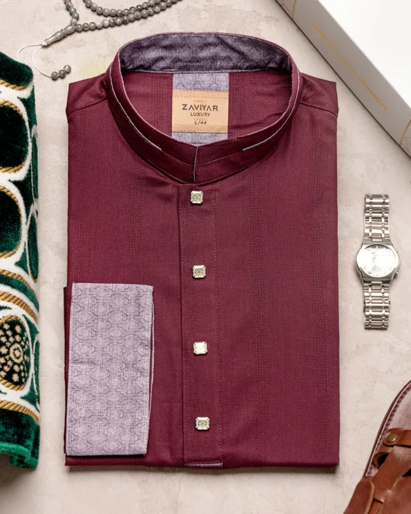 Product Description : Men’s fancy cotton regular fit Panjabi For Eid. Band Collar. Collar band & sleeve has embroidery details. Decorative metal show button, long Sleeve, straight hem.