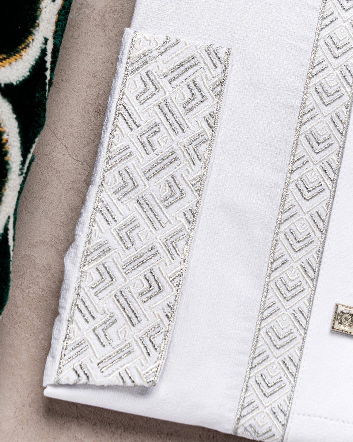 Product Description : Men’s Jacquard Cotton regular fit panjabi For Eid. Band Collar. Collar band & sleeve has embroidery details. Decorative metal show button, long Sleeve, straight hem.