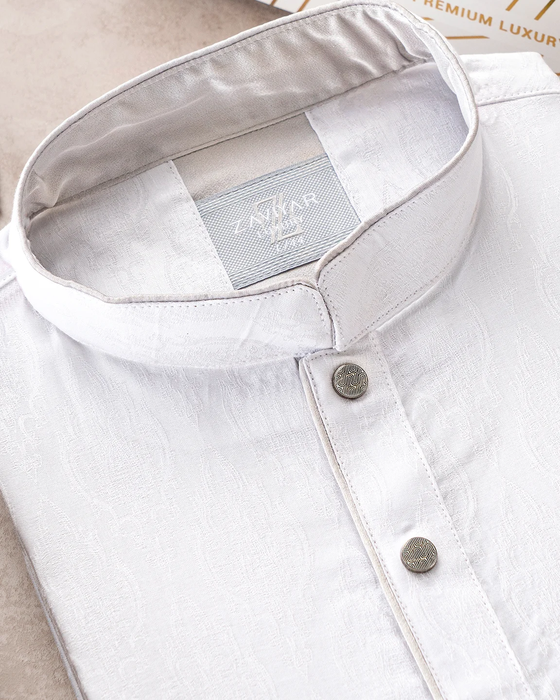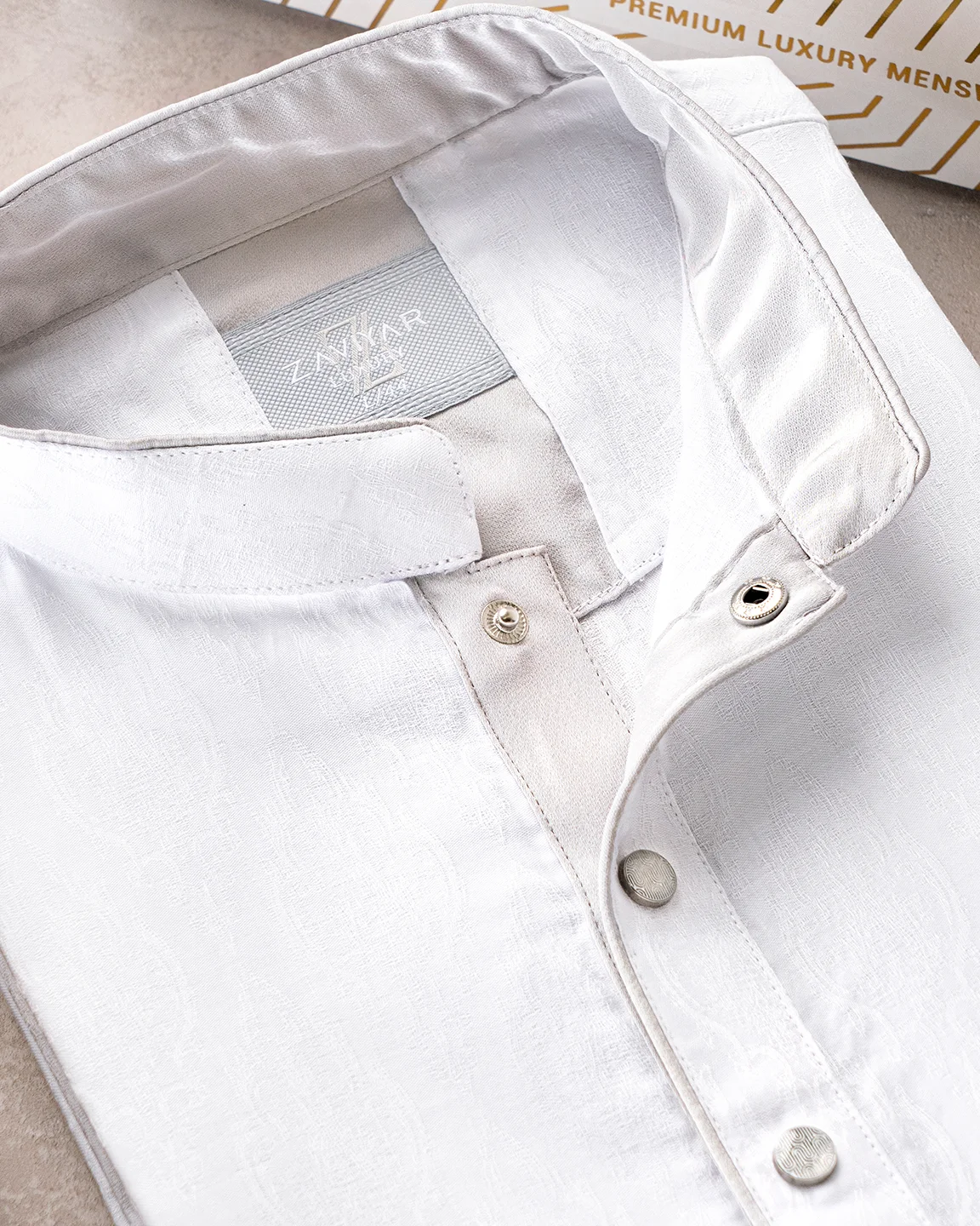 Product Description : Men’s Jacquard Cotton regular fit Panjabi For Eid. Band Collar. Collar band, Body & sleeve has embroidery details. Decorative metal show button, long Sleeve, straight hem.